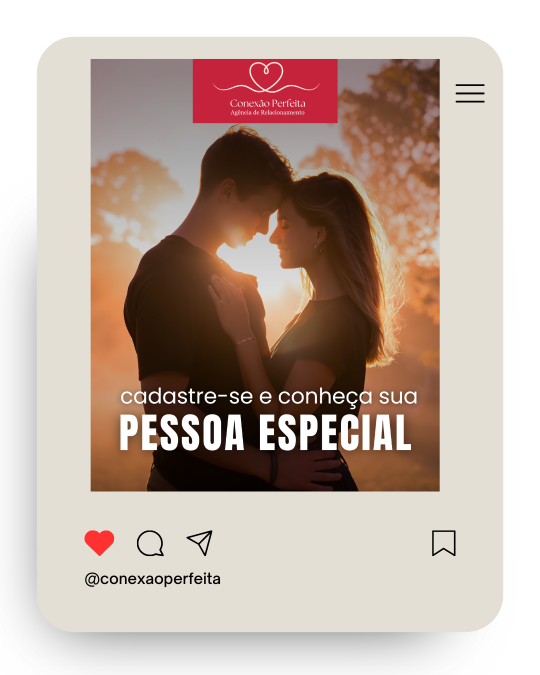 A Conexão Perfeita é uma agência criada para pessoas que buscam relacionamentos reais, com propósito e clareza de intenção. Nosso foco não é quantidade, mas qualidade nas conexões, respeitando o tempo, a segurança e as expectativas de cada usuário.